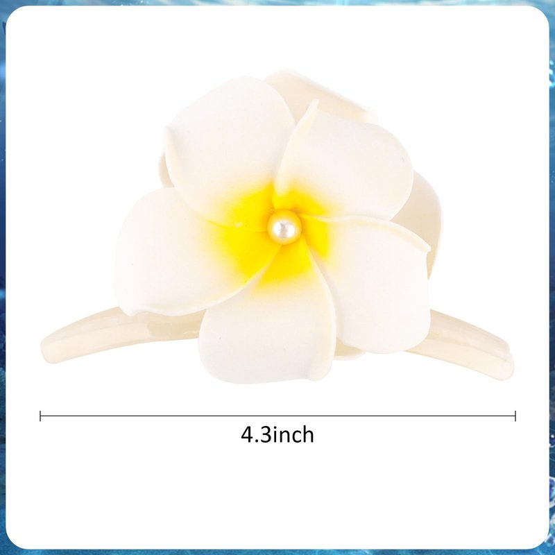 Hapdoo 1PC Hawaiian Flower Hair Clips, Plumeria Frangipani Hair Claw Clip, Tropical Artificial Floral Party Beach Hair Clips for Thin Hair Thick Hair, Luau Hawaii Bridal Wedding Hair Accessories