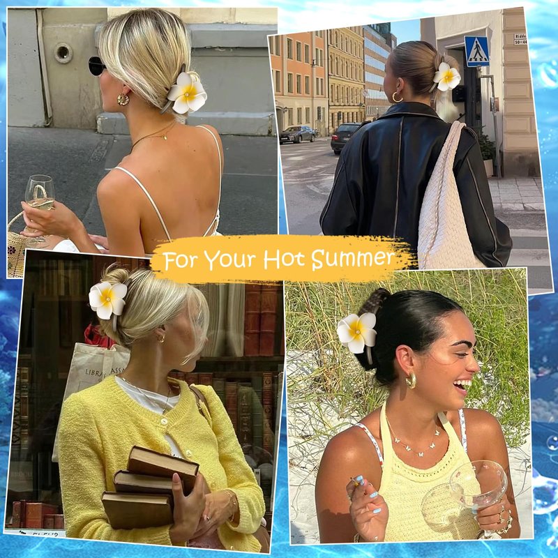- Captivating Hawaiian-Inspired Beauty: These stunning plumeria flower hair clips embody the allure of Hawaiian flora, with each petal meticulously crafted to resemble the iconic tropical blossom. As Hawaiian flower hair clips, they add a touch of exotic elegance to your hairstyle.