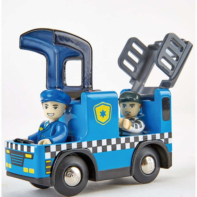 Hape Police Car with Siren | 3Piece Cops & Robbers Play Set with Action Figures Multicolor, L: 3.7, W: 2, H: 1.4 inch