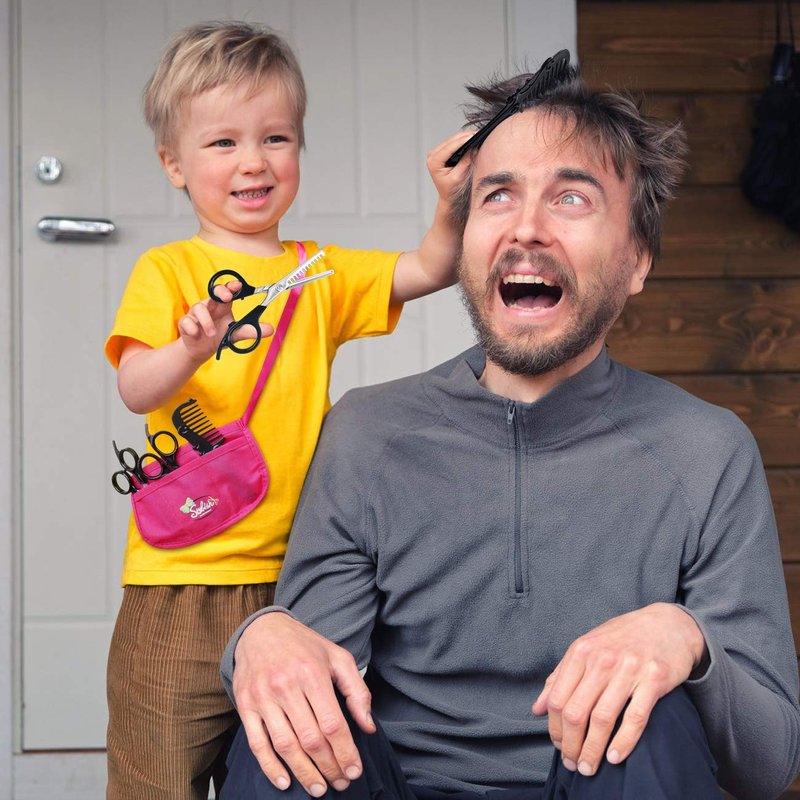 - Realistic Hair Stylist Set: The hairdryer blows air and requires 1 AA battery (not included), the pretend scissors can be opened and closed, the apron & cape add real feel to be a barber or stylist.