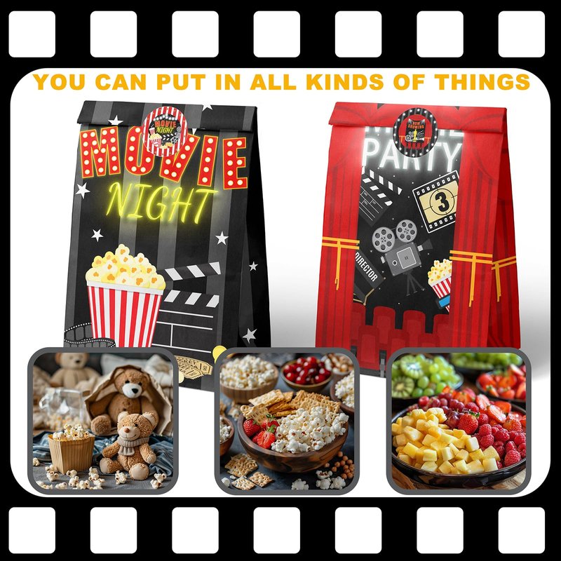 - MOVIE NIGHT FAVOR BAGS: Dive into the magic of cinema with our enchanting movie night-themed goodie bags! Perfect for a family movie night, a birthday celebration, or any film-themed event, these captivating bags will enchant guests and add a cinematic flair to your gathering.