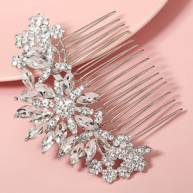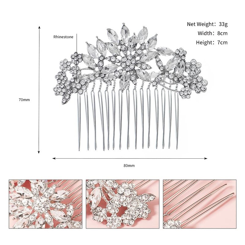 Hapibuy Crystal Bridal Wedding Hair Comb Silver Wedding Headpiece Hair Clip For Bride and Bridesmaid
