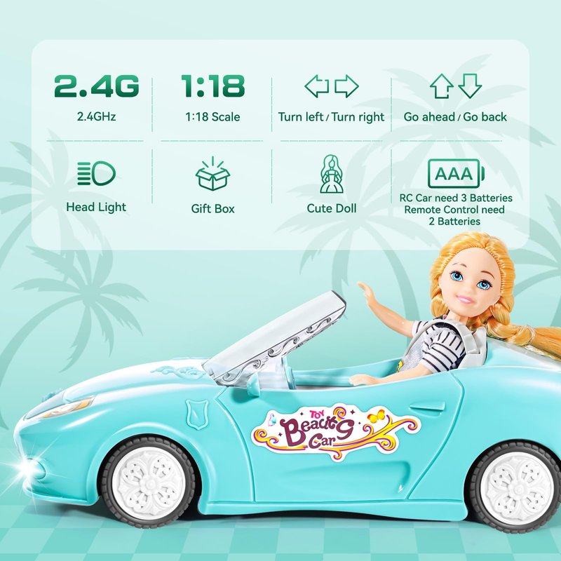 - Full Of Fun - The girls remote control car is equipped with a charming doll for role-playing excitement for personalizing the car according to your preference. Please make sure to read the user manual before using the car to enhance your enjoyment and have a hassle-free experience! (Requires a total of 5 batteries, 3 for the car and 2 for the remote control.)
