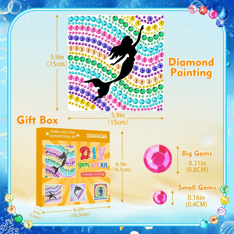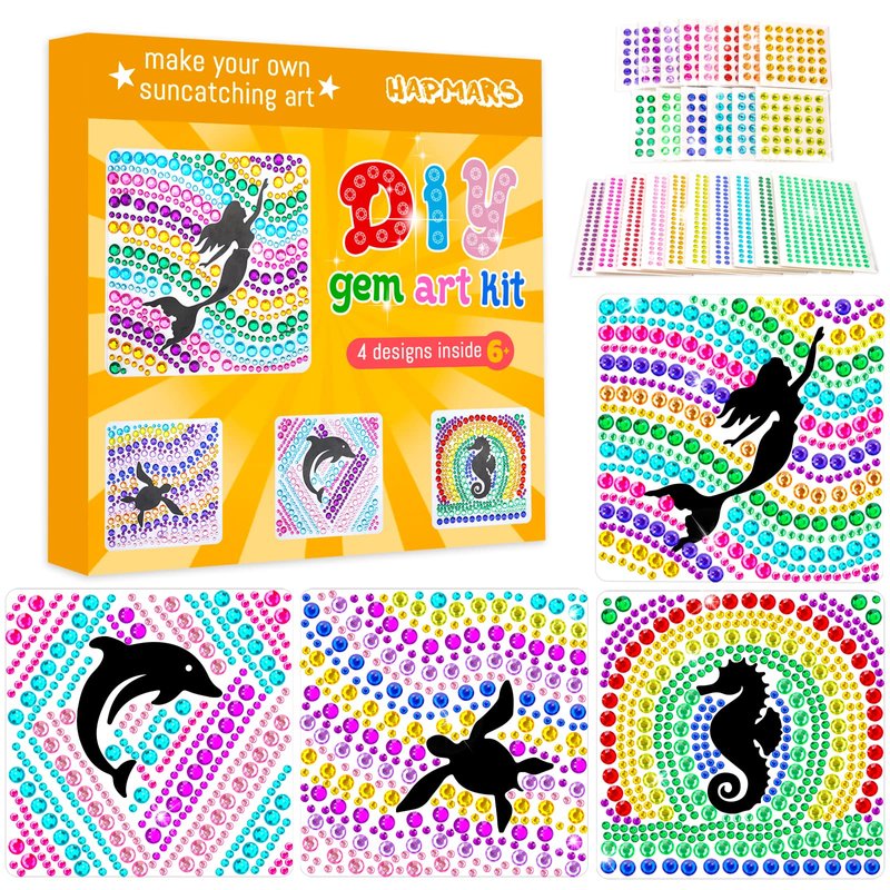 HAPMARS 4 pcs Window Art Suncatcher Kits for Kids Crafts Ages 6-8,Mermaid Gifts for Girls, Fun Arts and Crafts for Girls Ages 8-12, Birthday Gifts for 7 Year Old Girl(Mermaid)