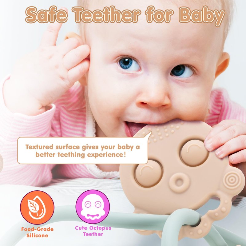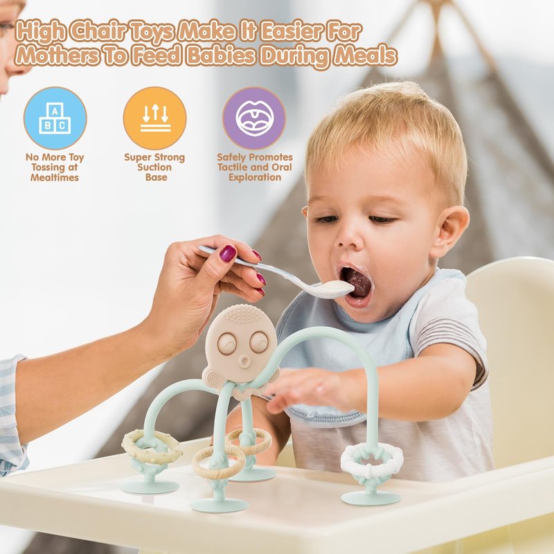 - 【Enhanced Mealtime Fun with High Chair Toys】: Make mealtime a breeze for both you and your baby with our high chair toys! Designed to keep your little one entertained, our suction baby toy adds an extra element of fun to family dining. The oak loop produces delightful "Da-Da" sounds, while the octopus's eyes feature a press function that pops and fidgets. These interactive features promote laughter and exploration, making mealtime enjoyable for your baby.