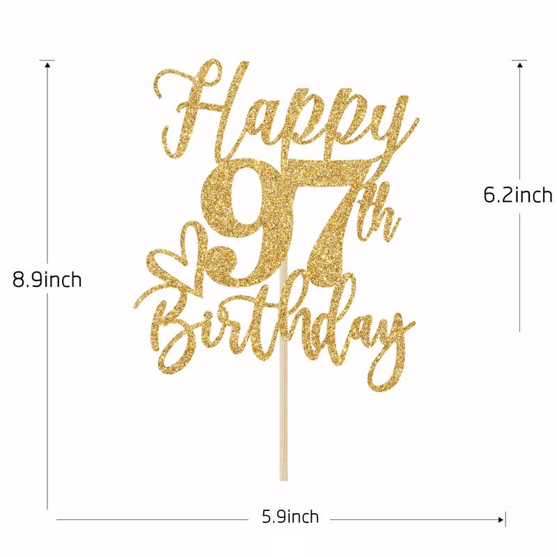Happy 97th Birthday Cake Topper, 97th Birthday Decorations for Men/Women, Cheers to 97 Years, 97 Fabulous, 97th Happy Birthday Party Supplies Gold Glitter