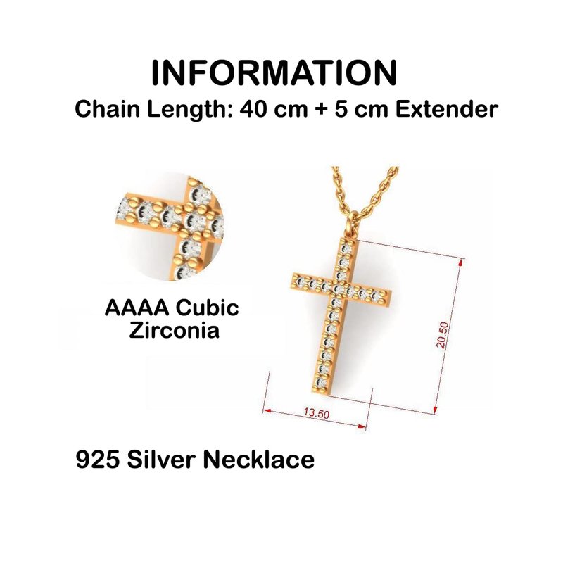Looking for the perfect gift for that special Wife in your life Look no further than our stunning Crystal Gold Cross Necklace! Crafted from high-quality .925 sterling silver and coated with 14k gold, this beautiful necklace is sure to catch the eye and make a statement.Each Crystal Gold Cross Necklace arrives gift-ready in our exclusive matte black gift box, complete with a Certificate of Authenticity Card and an Exclusive Message Card featuring the message or graphic of your choice. Plus, with the pendant measuring 0.53 inches in width and 0.81 inches in length, it's the perfect size to make a statement without overwhelming your look.Whether you're shopping for a birthday gift, Mother's Day gift, or simply a way to show your appreciation, the Crystal Gold Cross Necklace is the perfect choice. So why wait Order yours today and give the gift of luxury and style!