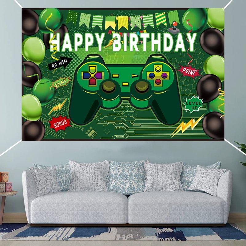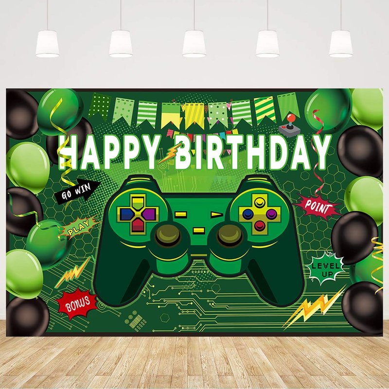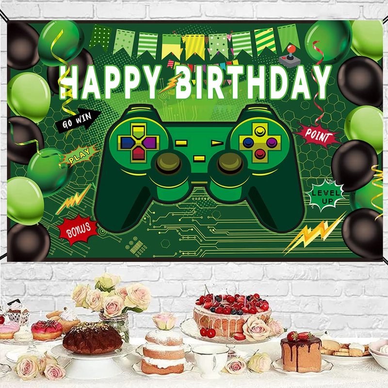 Happy Birthday Backdrop Banner Video Game Birthday Party Decorations Supplies for Game Fans Kids Boys Gaming Party Props Party Accessory Party Decoration Supplies