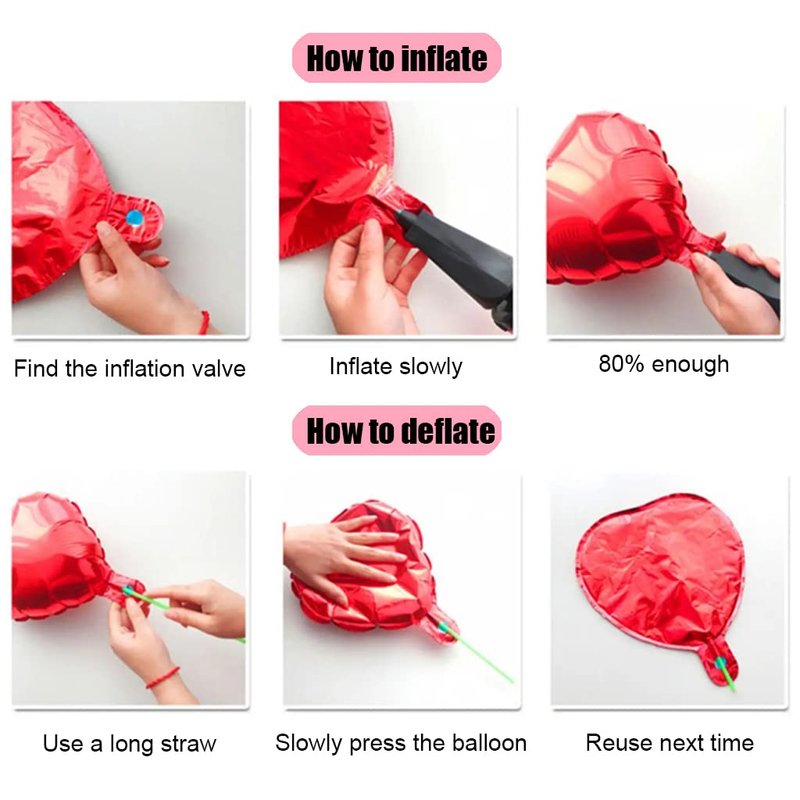 - Automatic Sealing and Reusable. No extra knot, self-sealing valve, convenient inflation and deflation, please repeatedly pinch the inflator, to ensure that no air leaks, and balloons can be deflated with a straw to facilitate repeated balloon use