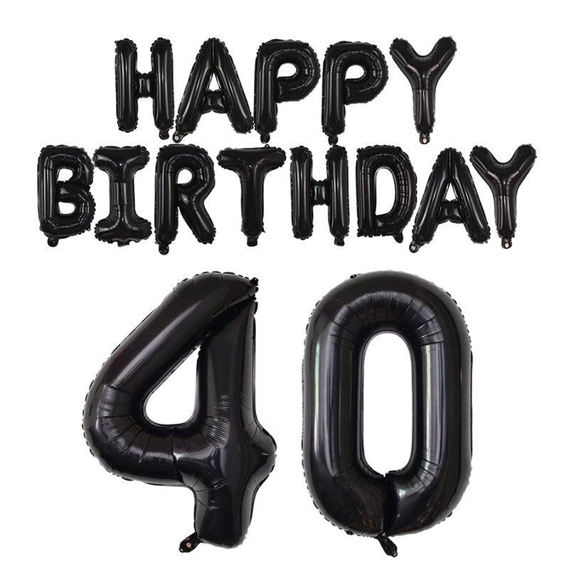 Happy Birthday Balloon Banner 40 inch 40 Balloon Number 16 Inch Happy Birthday Letters Balloons Black Foil Mylar Balloons for Women and Man 40th Birthday Decorations Party Supplies