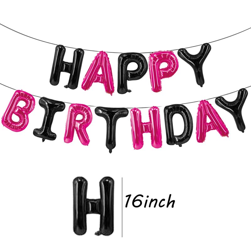 Happy Birthday Balloons Banner Black & Hot Pink 16 Inch for Kids and Adults Birthday Party Decorations Supplies