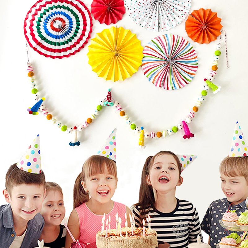 - 【PERFECT BIRTHDAY DECORATIONS】: Our Happy Birthday Party Hat Garland is 100% handmade of wool felt which has 3D effect. Cute Little Birthday Hats add a stunning backdrop to your celebration. Our fun and colorful Happy Birthday banner garland is very suitable for any colorful party theme. It brings warm Birthday wishes to anyone at any age!