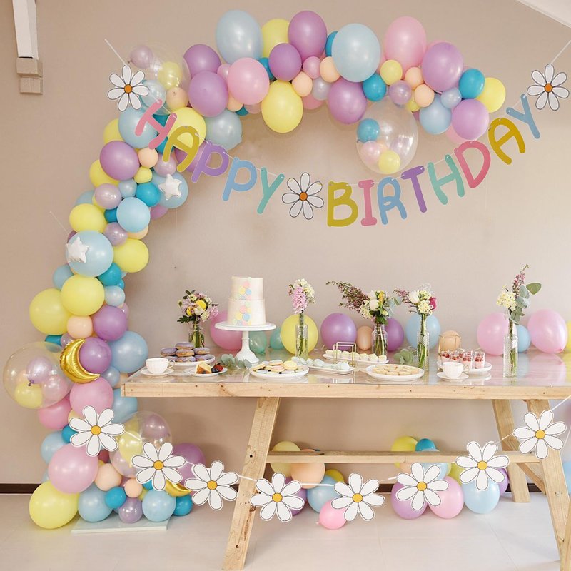 - Included:Macaron color happy birthday banner and flower banner,your party will be more charming and attractive with these daisy party decorations
