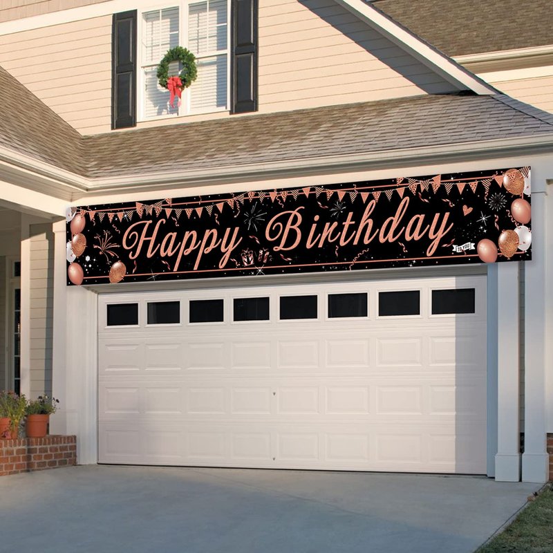 - LARGE BIRTHDAY BACKDROP - 1pc rose gold happy birthday banner and 1pc long string for create the best birthday party surprise, 118 x 19.6 inch/ 300 x 50cm, perfect happy birthday sign for birthday photo booth backdrop and decorate your party a memorably atmosphere.