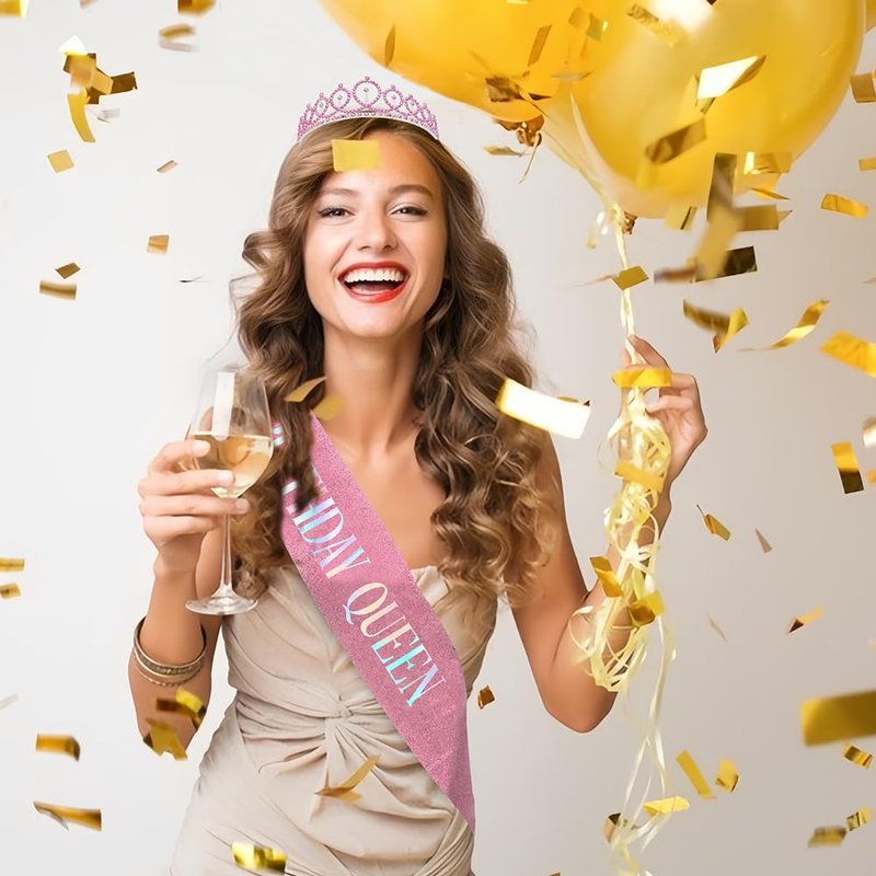 - HAPPY BIRTHDAY DECORATIONS FOR WOMEN: Princess birthday party decorations are suitable for women of any age on their birthday, the sparkling diamonds on the birthday crown adult woman and the glittering birthday queen sash with glitter make you dazzle on your special day, be the brightest in your birthday party, this girls birthday party decorations not only add a sense of ambiance to your birthday party, but also serve as a photo prop to record this memorable day.