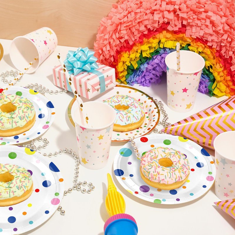 - Theme decoration: These decorations are designed with vibrant colored dots as decorations, creating a whimsical atmosphere for girls' birthdays or baby showers. Celebrate your child's birthday in a fashionable way with this charming set of colorful polka dot themed party supplies! Very suitable for birthday parties or baby showers.