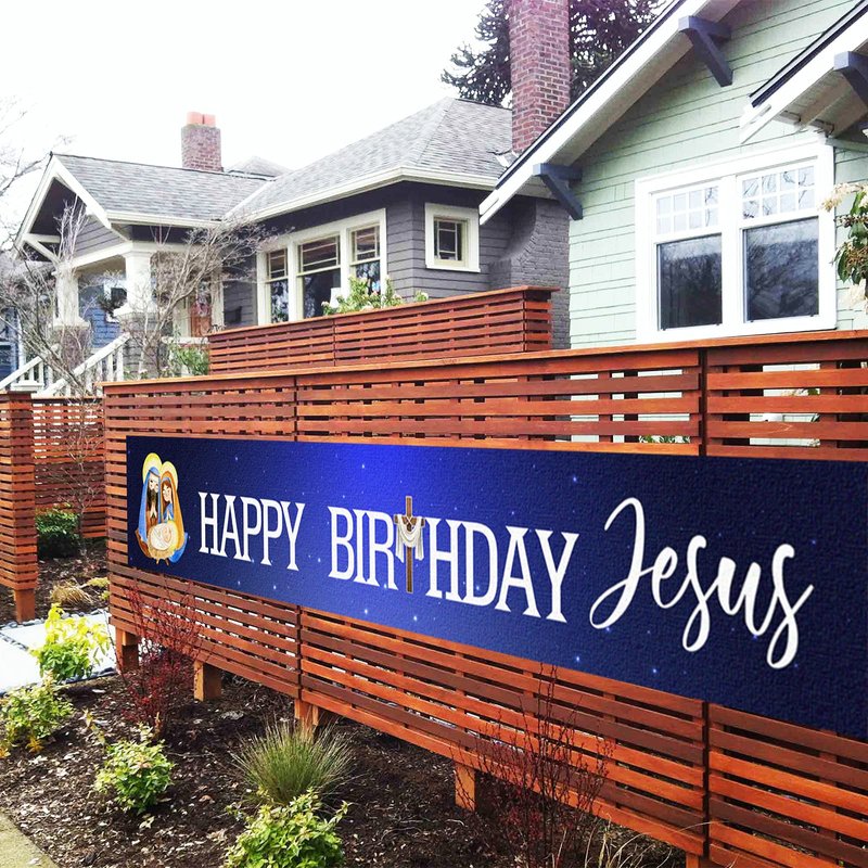 Happy Birthday Jesus Banner,Christmas Birthday Banner for Christmas Jesus’s Birthday Party Decorations,Yard Backdrop of Happy Bday Jesus God Party Decor (118” x 19.6”)