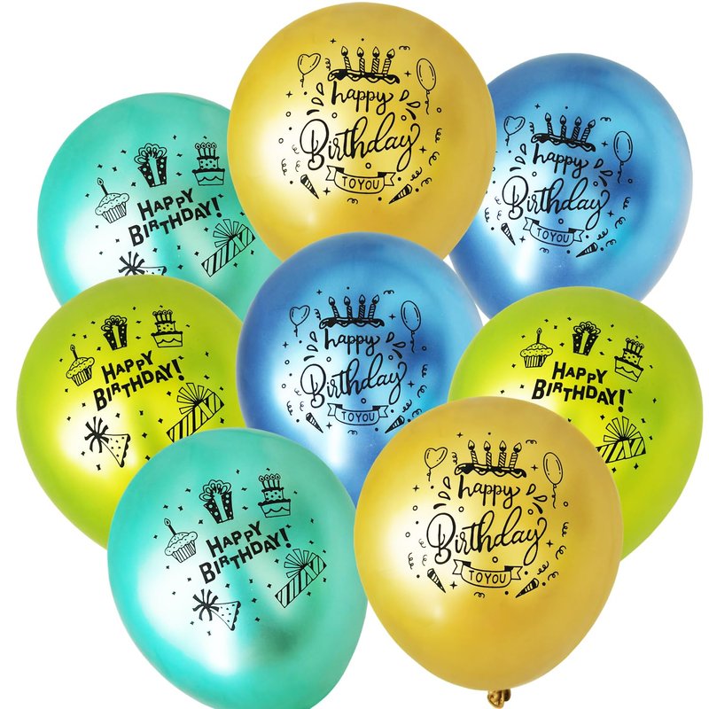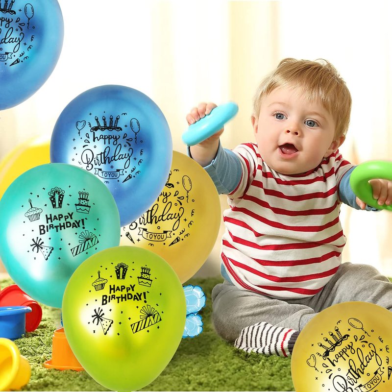 Happy Birthday Metallic Balloons,30 PCS Blue Green Yellow Metallic Printed Balloons Happy Birthday Ballons Party Deco, Ballons Birthday for Child Birthday Party