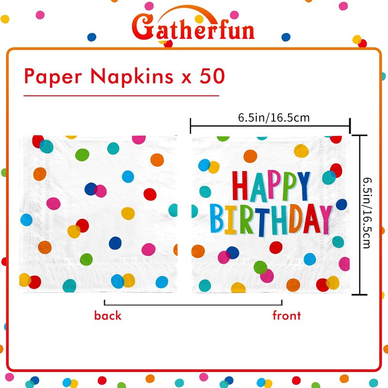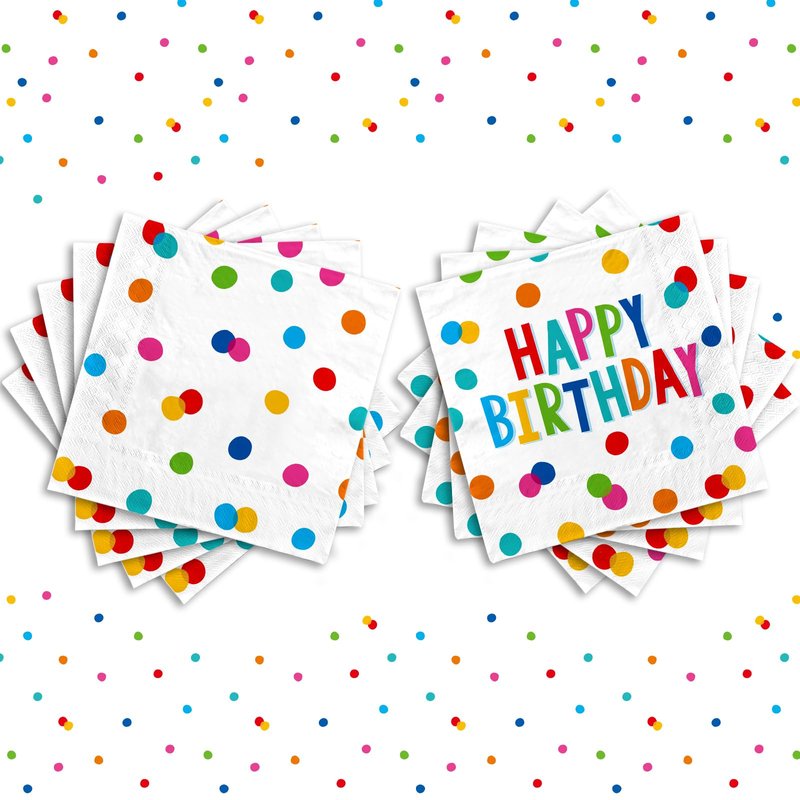 Happy Birthday Party Supplies Set - Birthday Dots Design, Featuring Happy Birthday Napkins, Suitable for Adults and Kids Birthday Decorations (6.5X6.5 in, 3-Ply Disposable, 50-Pack)