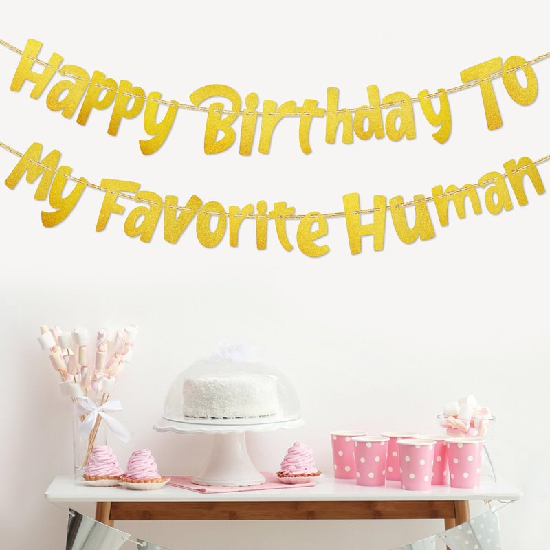 Happy Birthday to My Favorite Human Banner, Gold Happy Birthday Sign Funny Birthday Decorations Happy Birthday Banner for Men Adult Gifts Party Decorations Party Supplies