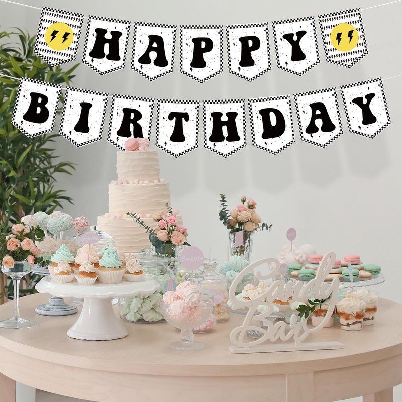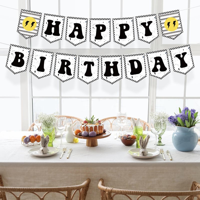 - Unique Design:This black and yellow happy face happy birthday banner is designed with yellow smiley face,lightning patterns and black “HAPPY BIRTHDAY”words,which will add a happy atmosphere for your little baby birthday party,a must have for your little one’s big day!