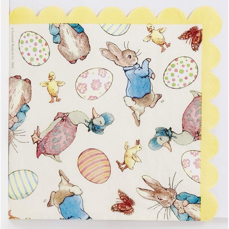 1 Officially Licensed Pack - 20 Scalloped Edge Party Napkins...BRAND NEW Store Stock...Features PETER RABBIT, JEMIMA PUDDLE DUCK & Colorul Easter Eggs...Each Napkin Measures 6.25 Inches Wide - Folded...Strong 2-Ply Disposable Party Napkins...Decorate the Party Table - or Make an Ordinary Meal EXTRA-ORDINARY!