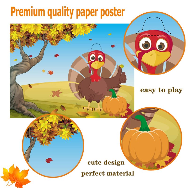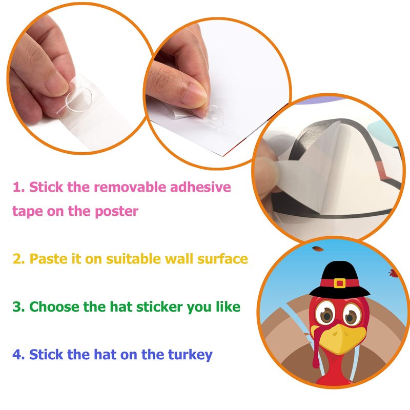 - BEST THANKSGIVING PARTY CHOICE: 21.5’’ x 27.5’’ large high gloss poster, can be used as home decoration, wall decorations, room decoration, Thanksgiving party. 24 PCS reusable hat stickers can play with many children at the same time.
