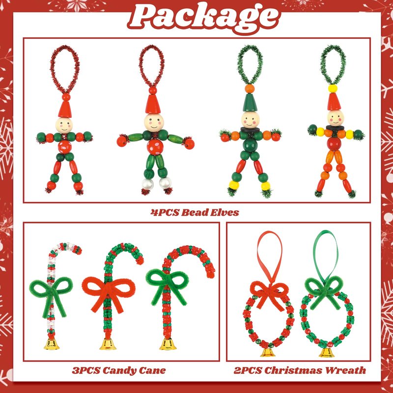 - Christmas Beaded Crafts: The Christmas beads feature delightful, charming element designs, such as wreath, elf, and candy cane, colorful and classic, which will bring the joyous spirit of Christmas to your home and put a smile on your face.