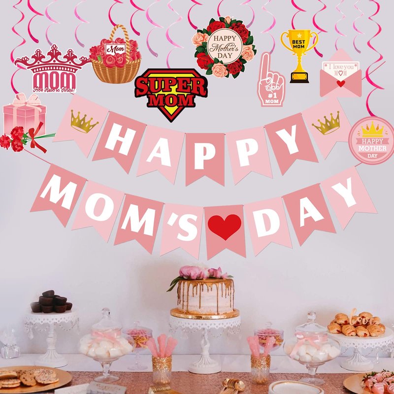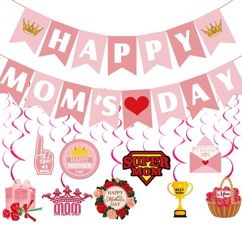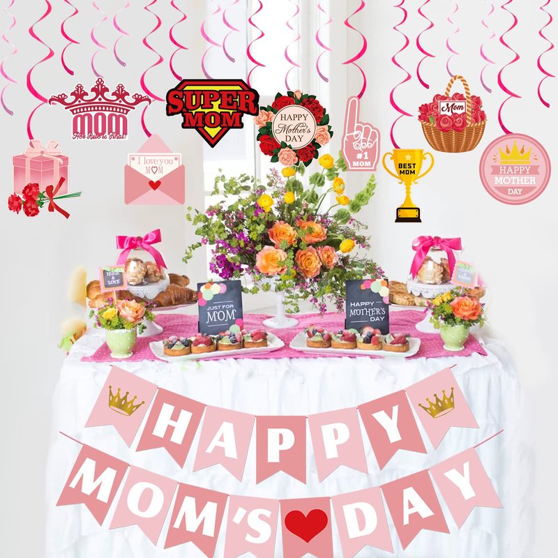 - 【What You Will Get】: 1 pcs pink happy mom's day Banner, 9 pcs mothers day hanging decorations and 9pcs hanging swirl. The mothers day party decorations provide everything you need to decorate your mothers day party supplies!