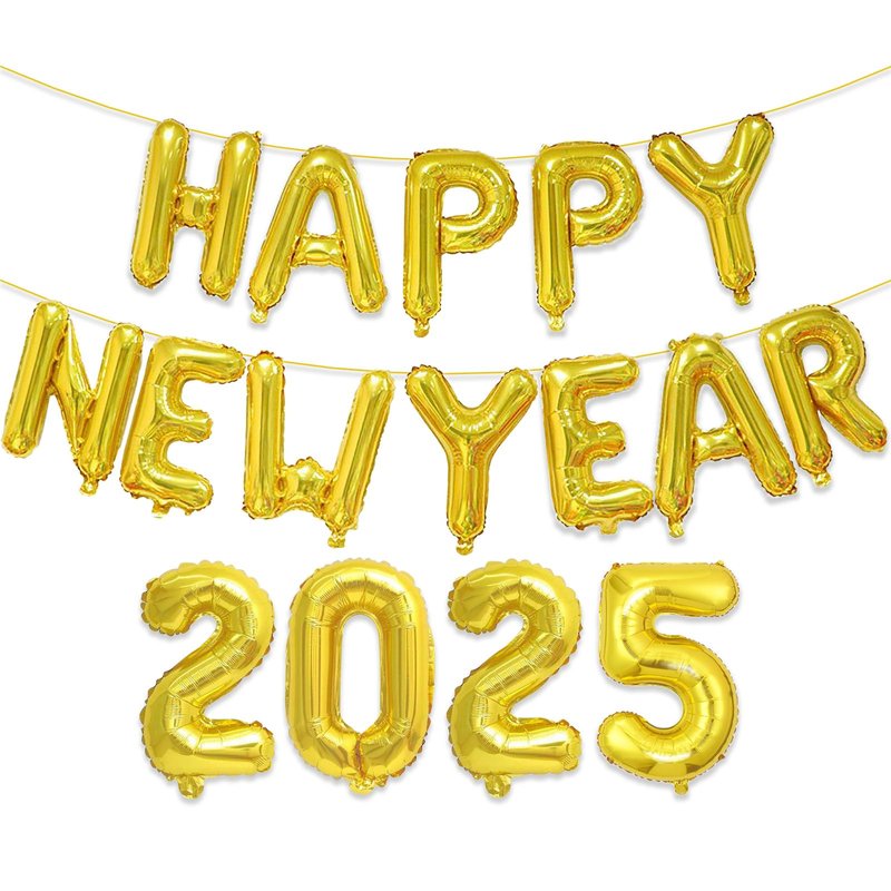 - What You Get: Gold 16 inch HAPPY NEW YEAR 2025 balloons + straw and ribbon, color uniform