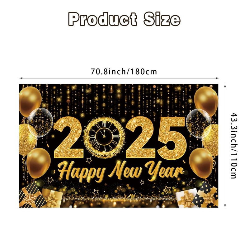- Suitable size: You'll get a Happy New Year backdrop with dimensions of 180 x 110 cm/ 70.8 x 43.3 inches. It's large enough to adorn your home or any place you like, filling the environment with a festive atmosphere