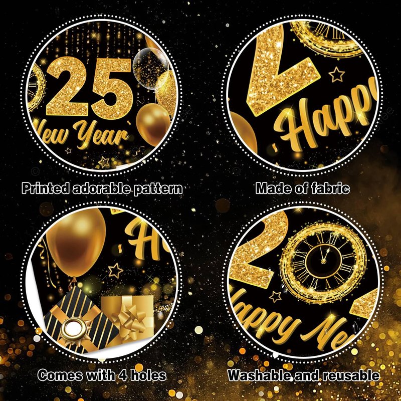 - Easy to install: This Happy New Year backdrop has four copper holes for easy hanging. A string is also included, enabling you to quickly attach the backdrop to the wall or other desired spots without hassle