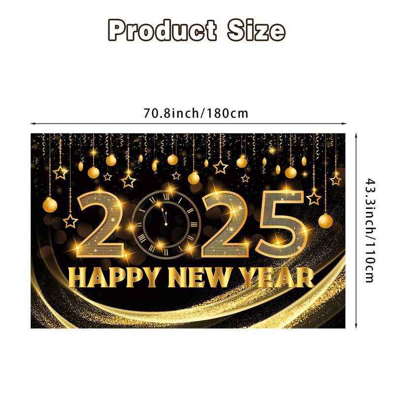 - Suitable size: You'll get a Happy New Year backdrop with dimensions of 180 x 110 cm/ 70.8 x 43.3 inches. It's large enough to adorn your home or any place you like, filling the environment with a festive atmosphere