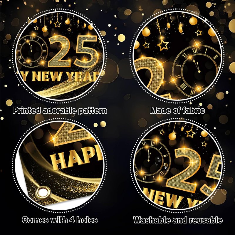 - Easy to install: This Happy New Year backdrop has four copper holes for easy hanging. A string is also included, enabling you to quickly attach the backdrop to the wall or other desired spots without hassle