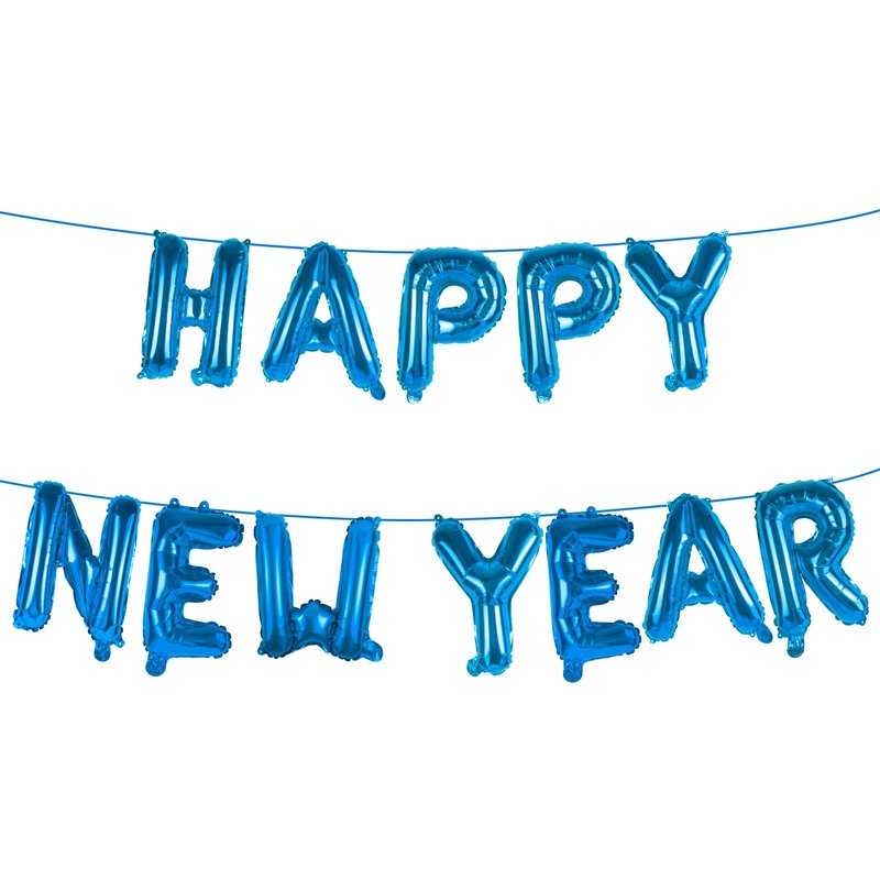 Happy New Year Balloon, 16inch New Year Letter Balloons NYE Decorations 2025, New Years Eve Party Banner Supplies 2025 Set (Blue)