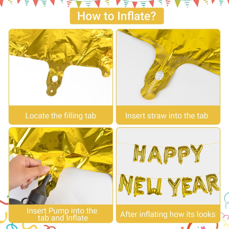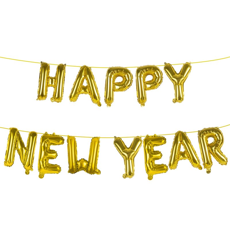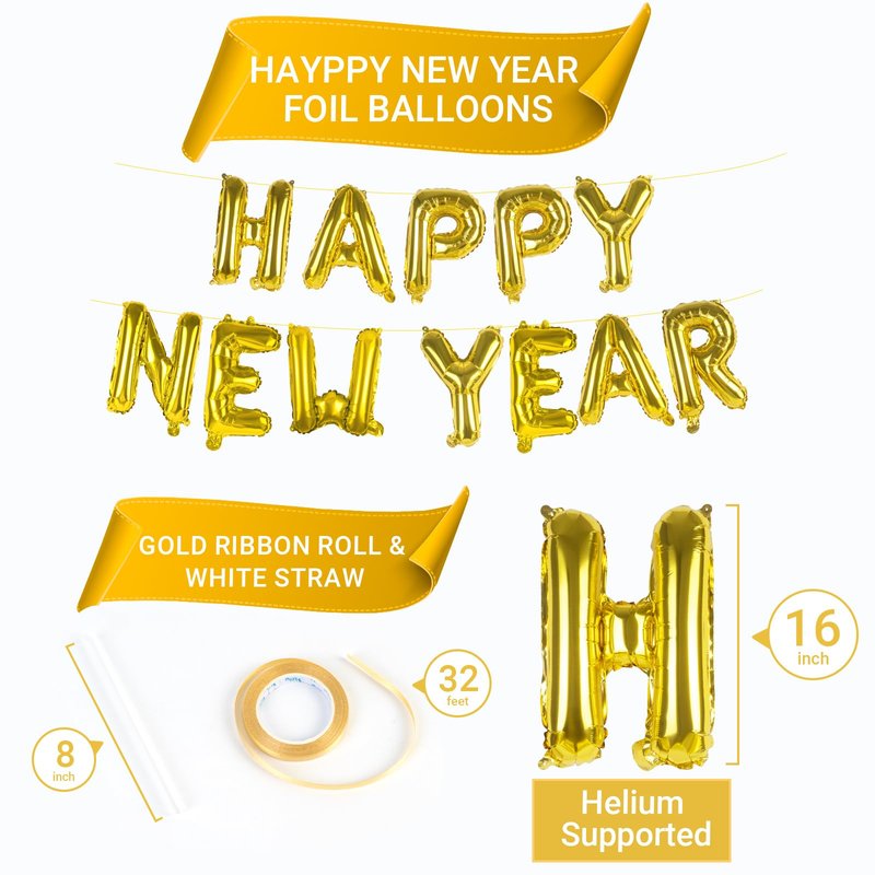 Happy New Year Balloon, 16inch New Year Letter Balloons NYE Decorations 2025, New Years Eve Party Banner Supplies 2025 Set (Gold)