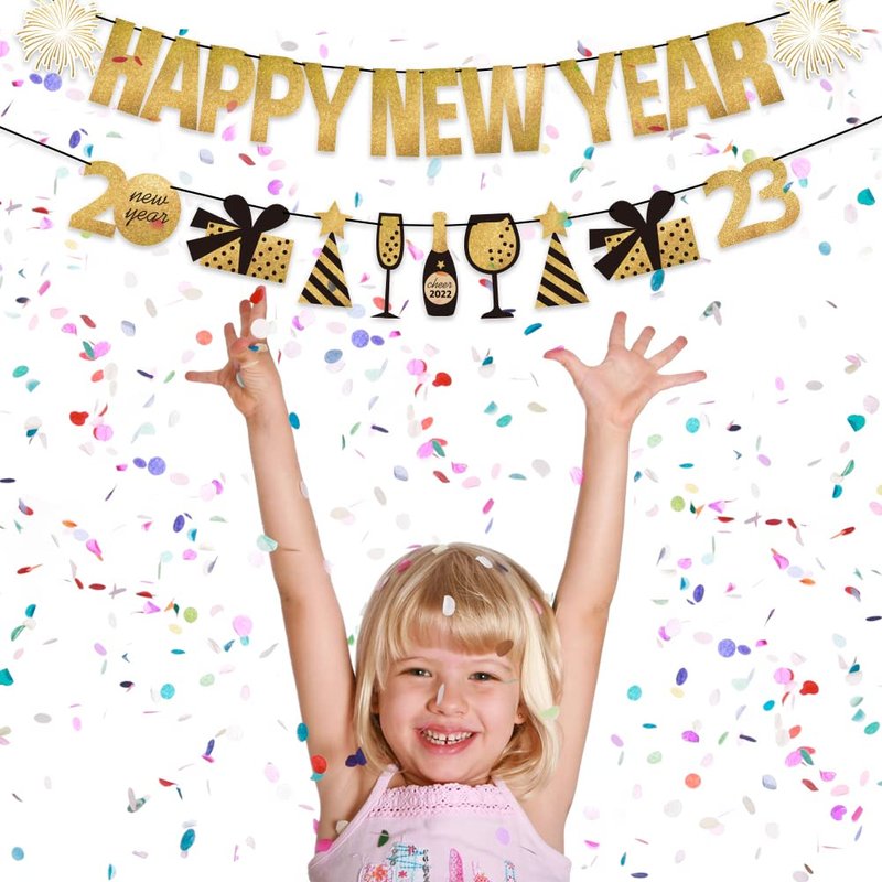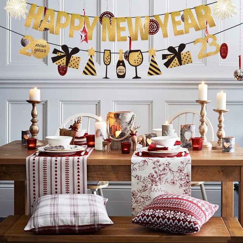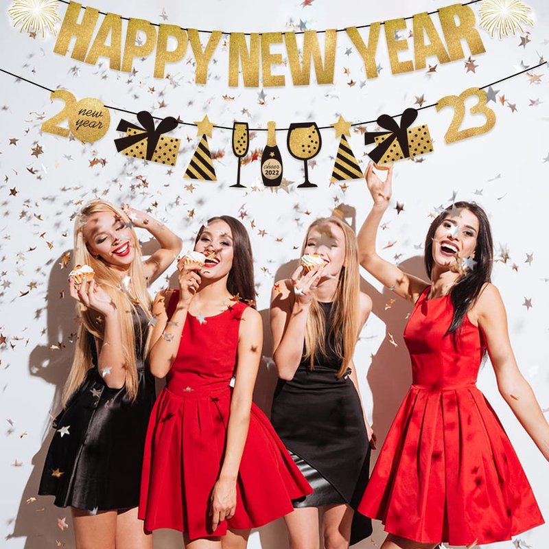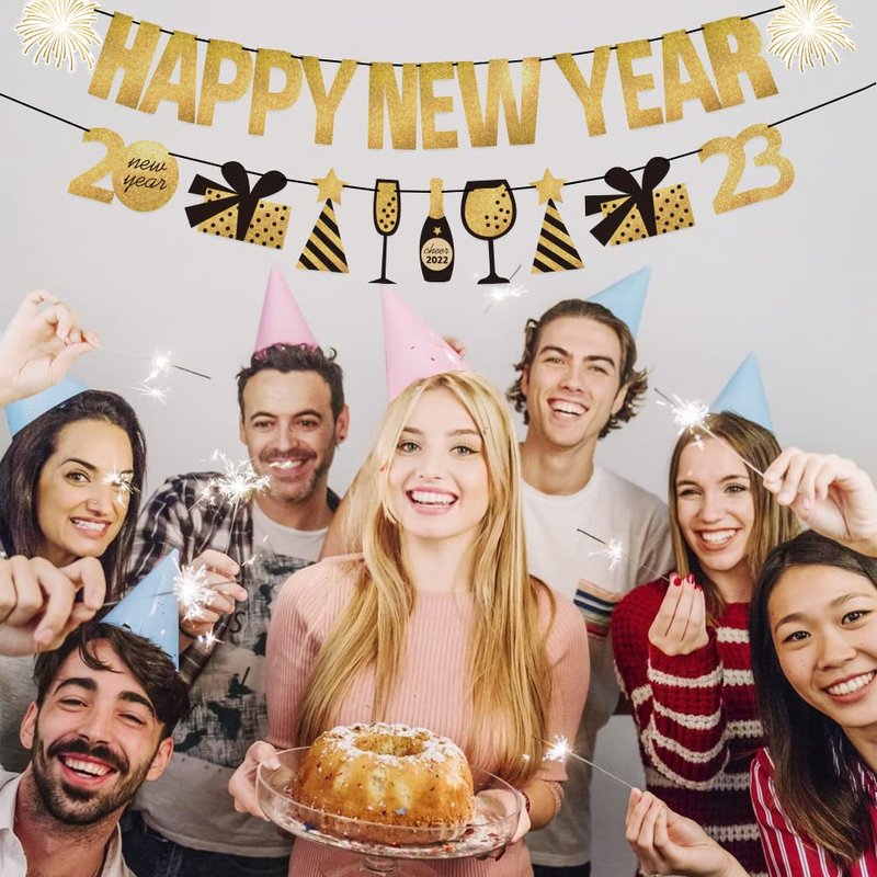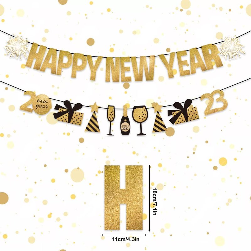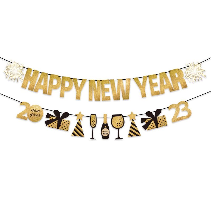 - Firework 2023 Happy New Year Banner - The unique design are attractive,except for the classic Happy New Year word,there are champagne,gift,goblet and other patterns,it will definitely catch the eyes of your guests.