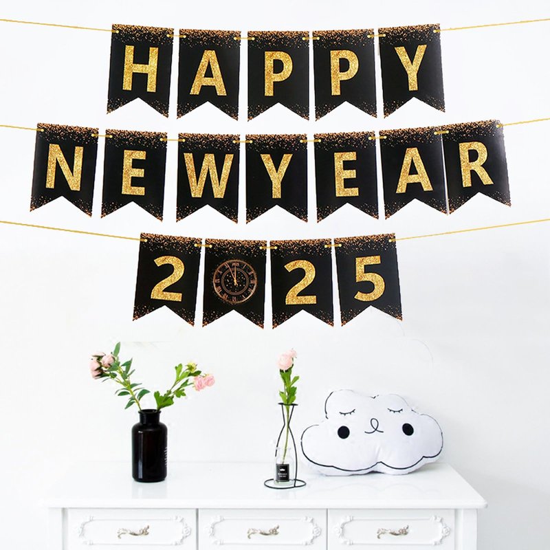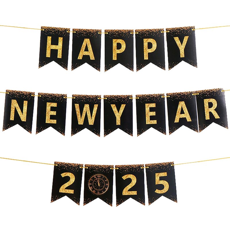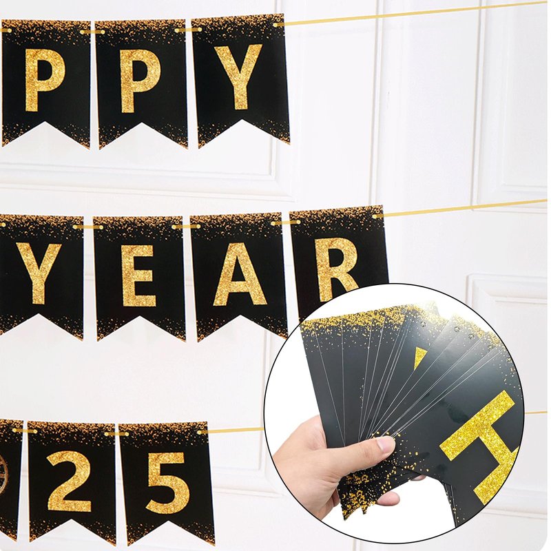 - 【DIY Happy New Year Decorations 2025】This happy new year banner 2025 is designed for easy assembly with hanging strings and a plastic needle included. The DIY aspect makes decorating for New Year's Eve more engaging and fun for everyone. Celebrate the arrival of 2025 with our "Happy New Year 2025" banner. This happy new year decorations 2025 features a sleek black and gold glitter design, making new year banner an ideal choice for your new years decorations 2025.