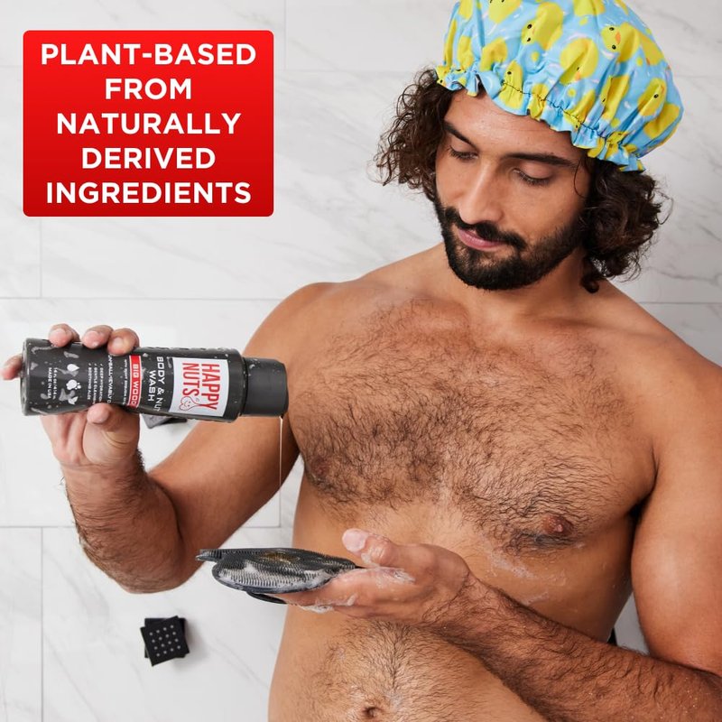 HAPPY NUTS Body and Nut Wash for Men - Big Wood - Natural Men's Shower Gel - Sandalwood Body Wash