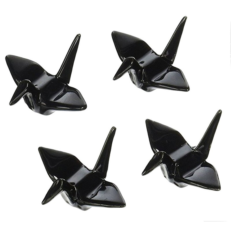 - Happy Sales HSCRCRN4BK, set of 4 Black Porcelain Crane Rests / Chopstick Rest set