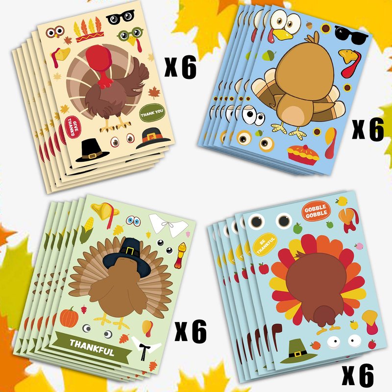 - 【MAKE A FACE STICKERS】DIY craft stickers for kids to decorate their own turkey stickers, creative games for thanksgiving party time, stickers are funny and cute, children would love to decorate their party, there are 6 styles in one set, each styles has 4 sheets