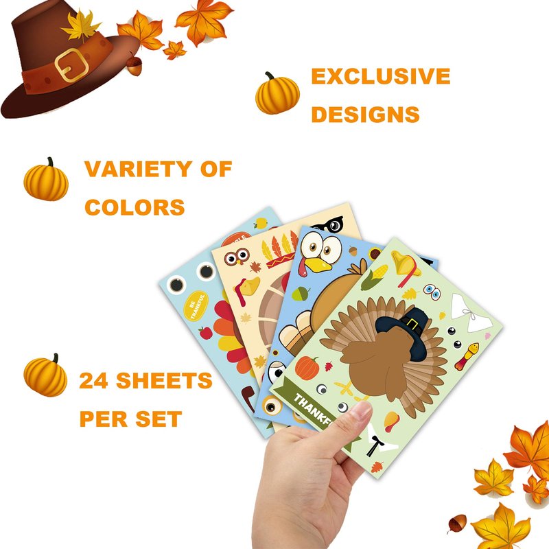- 【24 SHEETS THANKSGIVING STICKERS 】This make a turkey stickers for kids come with 24 sheets to let girls and boys create original sticker art all their own, Our sticker is colourful printed, easy to post and remove, no smell and harmless to children