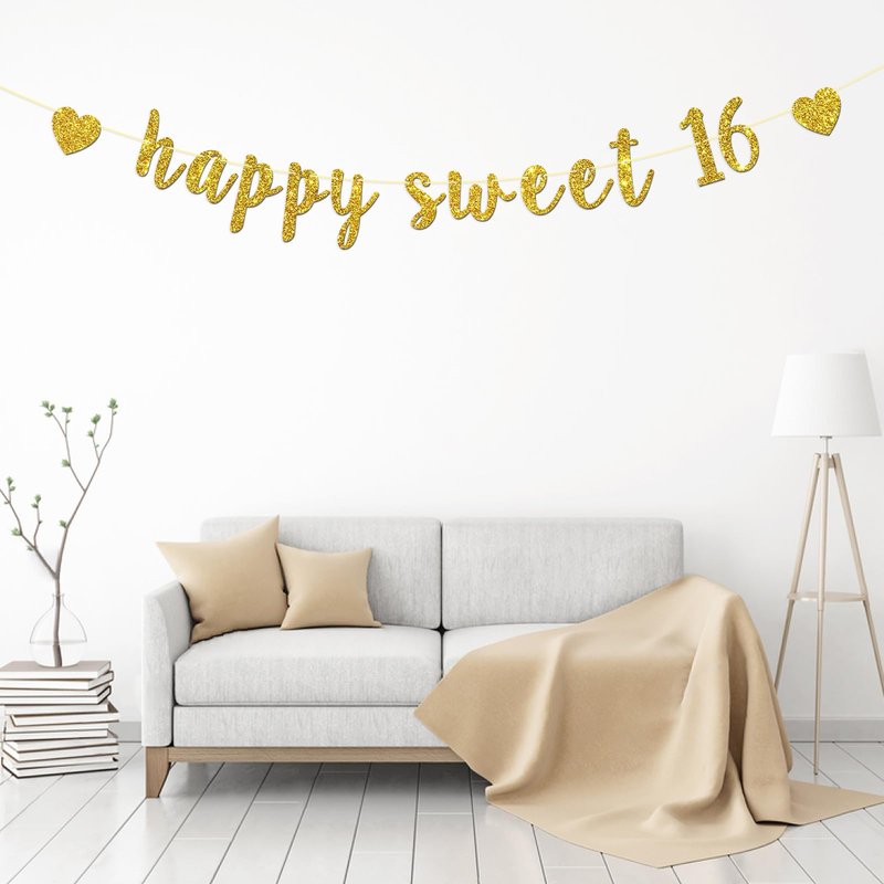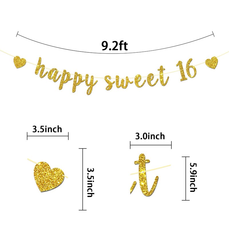 - Includes: Letters happy sweet 16 and 2 pic ❤,a needle and 1pcs enough long cord to hang