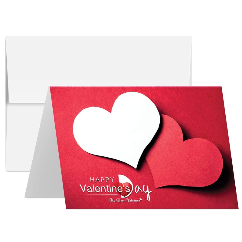 Happy Valentine’s Day Greeting Cards, Beautiful and Romantic Valentines Red and White Love Hearts Greetings for Husband, Wife, Boyfriend, Girlfriend | 5" x 7" | 25 Valentine Cards & 25 Envelopes