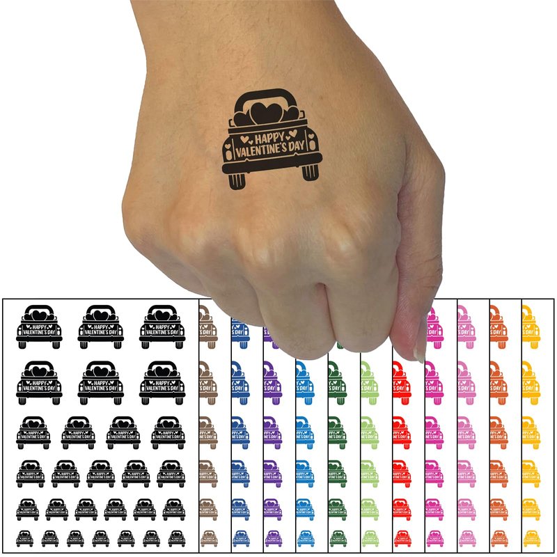 Happy Valentine's Day Truck Temporary Tattoo Water Resistant Fake Body Art Set Collection - Light Green (One Sheet)