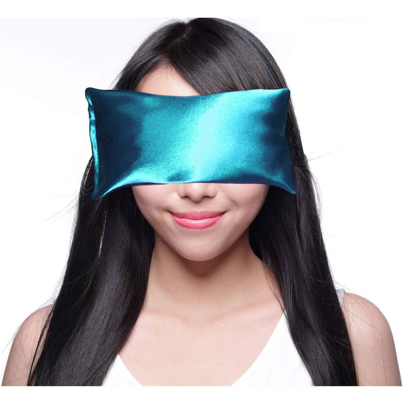 Happy Wraps Lavender Eye Pillow - Hot Cold Aromatherapy Satin Eye Mask for Yoga, Sleeping, Migraines, Stress, Relaxation - Gifts for Women, Birthdays, Coworkers, Christmas - AuqaBlue
