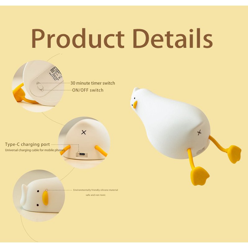 What you will get: 1 × duck night light ,1 × TC USB cable,1 × manual.