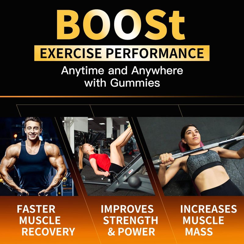 - [ Key Benefits]: Our Creatine monohydrate gummies are an easy way to consume, 2 gummies per serving, you can take it at any time, any place. It improved muscle strength, muscle recovery, improve endurance and energy boost. Suitable for a variety of users, and enjoyable taste.