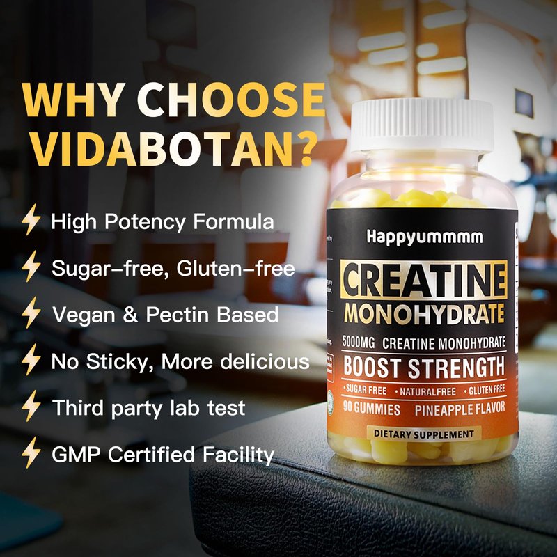 - [Vegan, Gelatin Free, Sugar free]: Each bottle contains 90 count vegan, non-GMO & gluten-free, sugar free creatine monohydrate gummies. Super delicious.