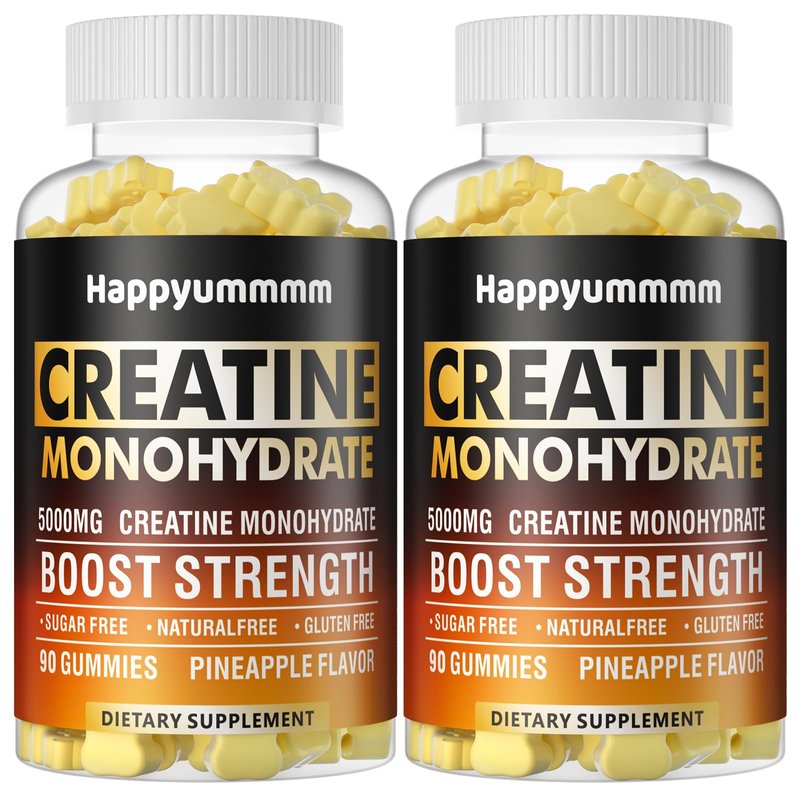Happyummmm Creatine Monohydrate Gummies 5000mg for Men & Women, Chewables Creatine Monohydrate for Muscle Strength, Muscle Builder, Energy Boost, Pre-Workout Supplement(90 Count)-Pineapple-2pack